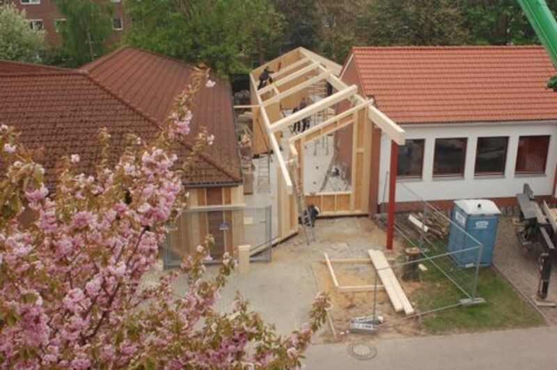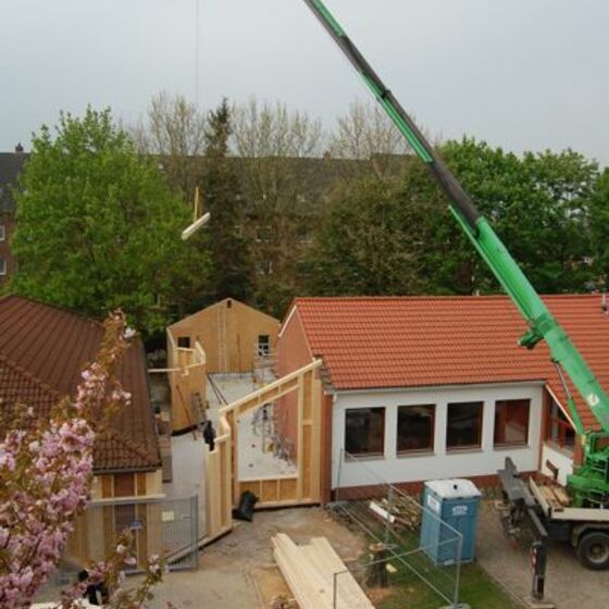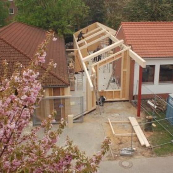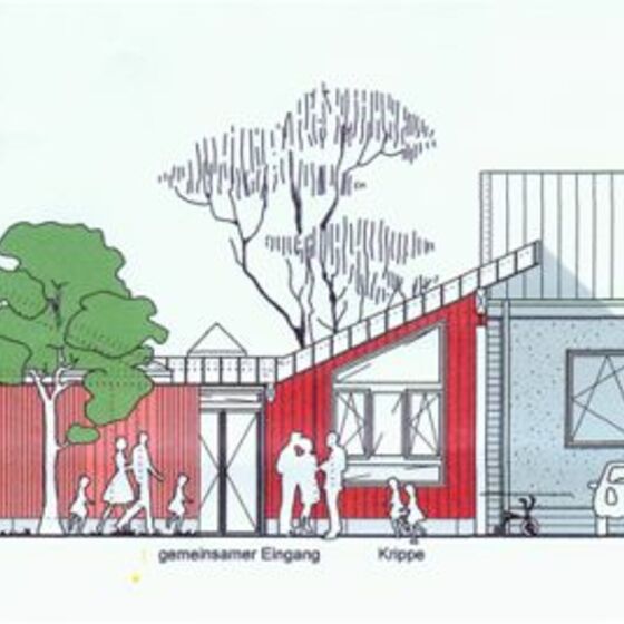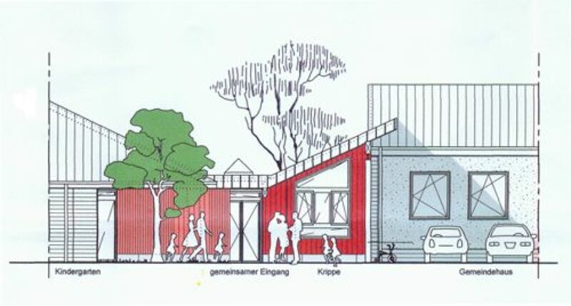 So soll sie enmal aussehen - unsewre neue Krippe. wischen Gemeindehaus und Kindergarten war noch Platz - der wird nun ausgefüllt, damit die Kleinsten in unserer Gmeinde gut betreut werden können. Im Folgenden nun Bilder vom Baufortschritt.