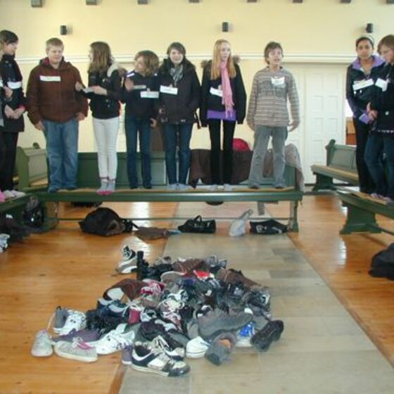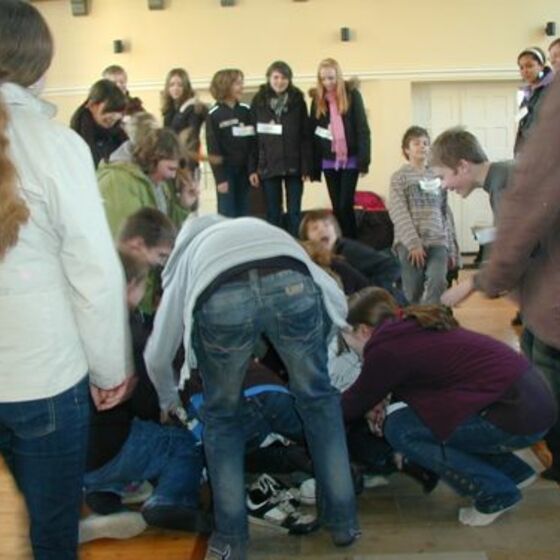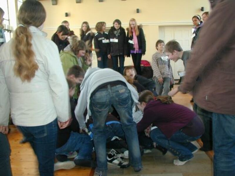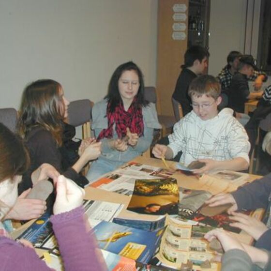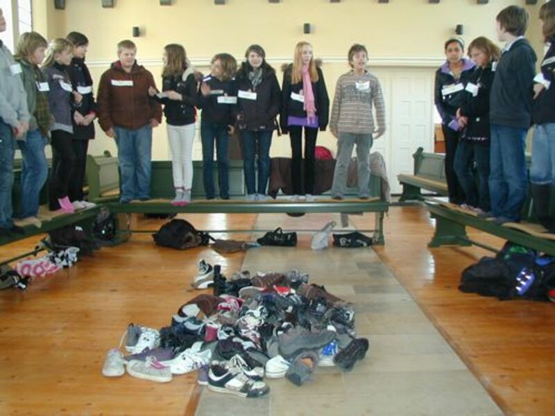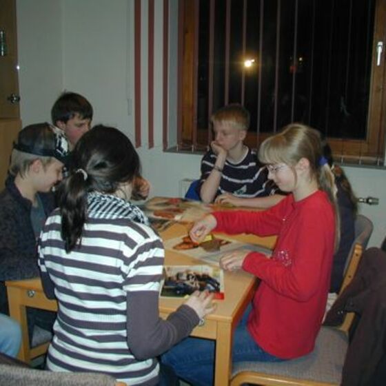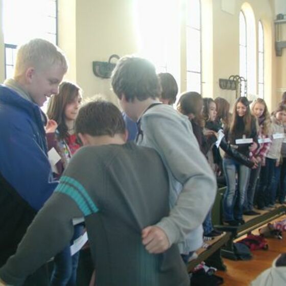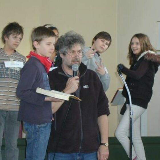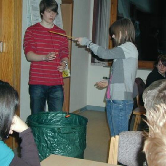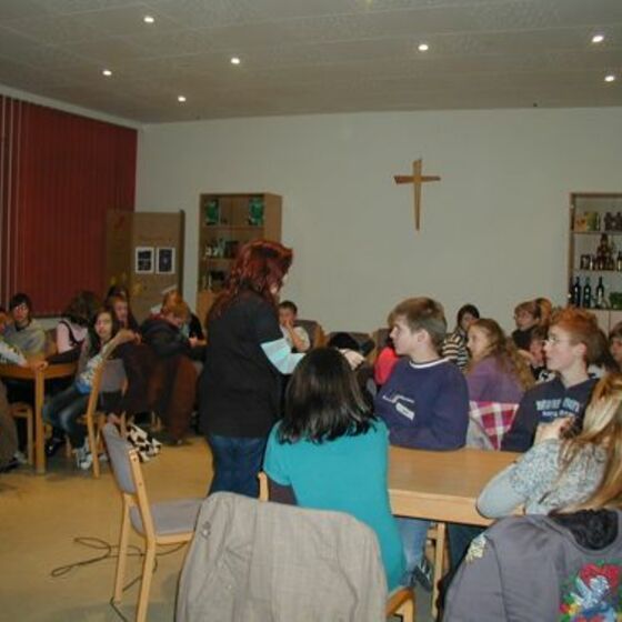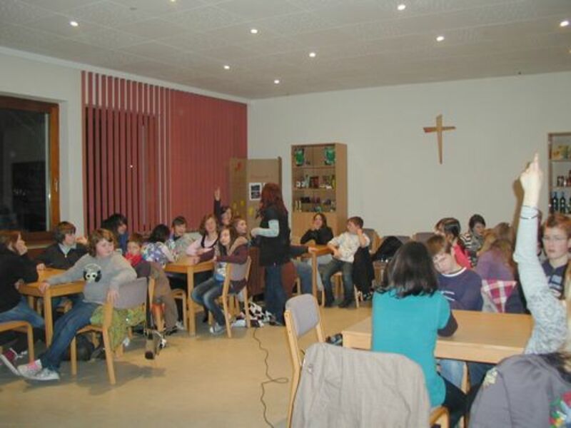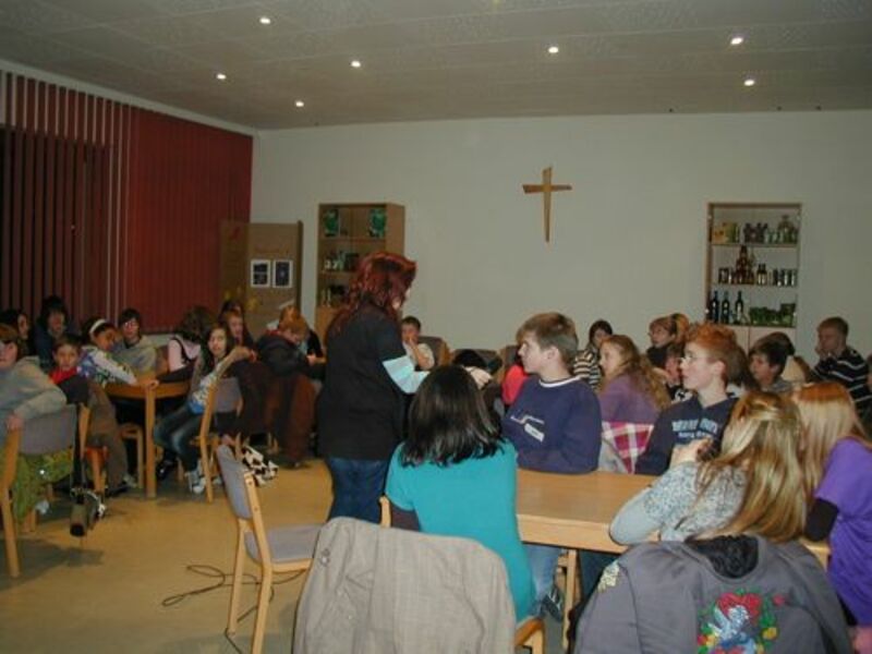 Zu Beginn des Bibel-Wochenendes ging es erst mal darum, einen Überblick zu gewinnen. Und das auf spielerische Weise. Allen wird ein biblisches Buch zugewiesen. So sind dann 34 biblische Bücher sind in unserer Kirche versammelt - leider völlig durcheinander. 1. Samuel neben Markus - das geht nicht. Julian bringt dann Ordnung in das Chaos.