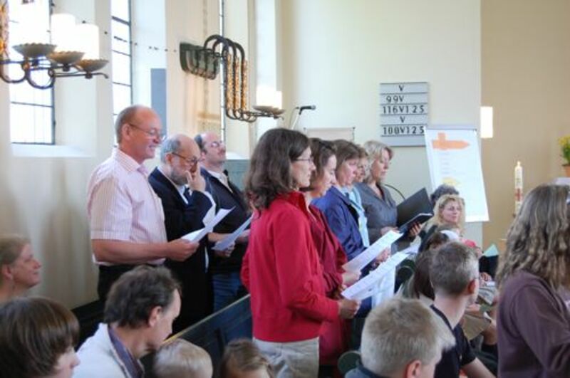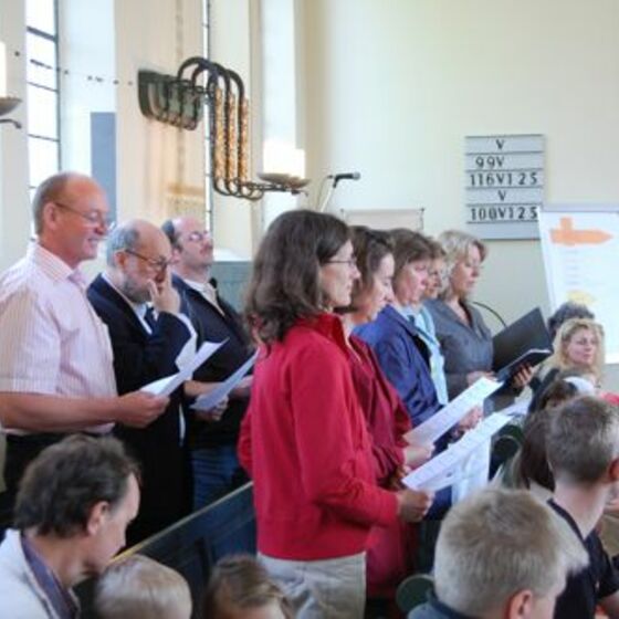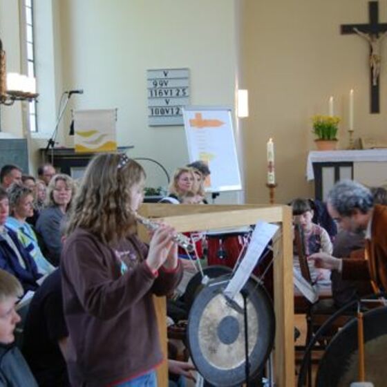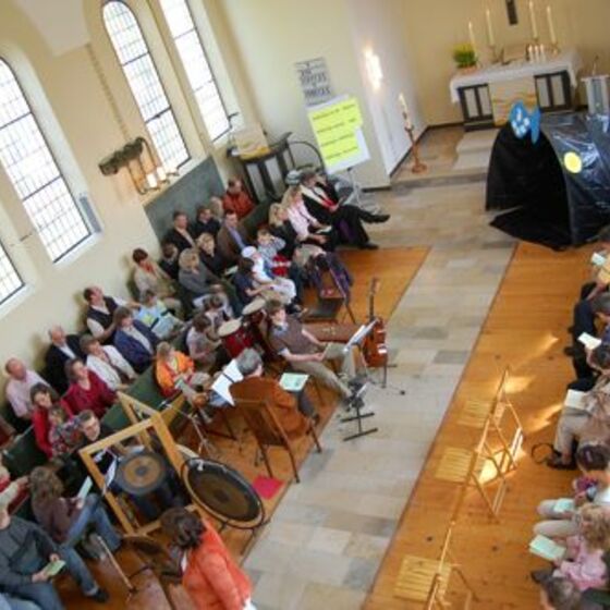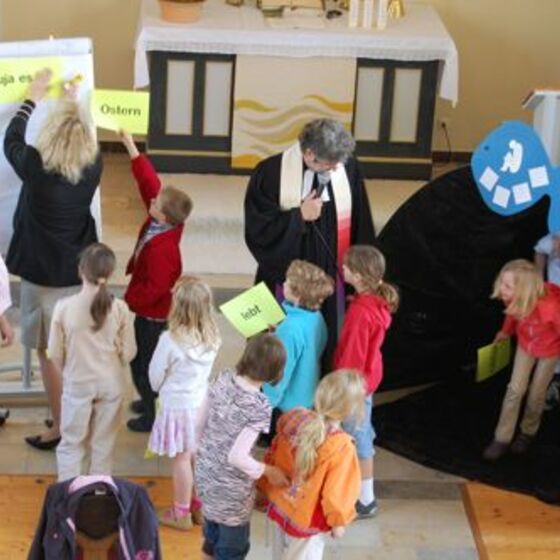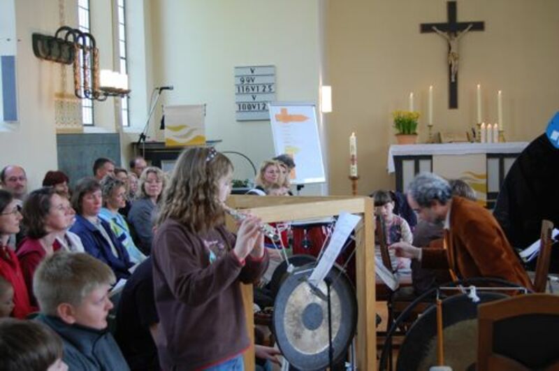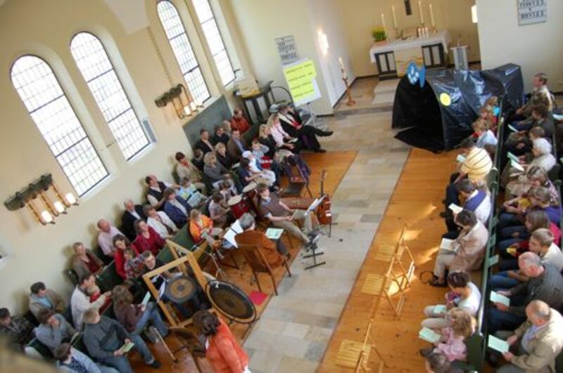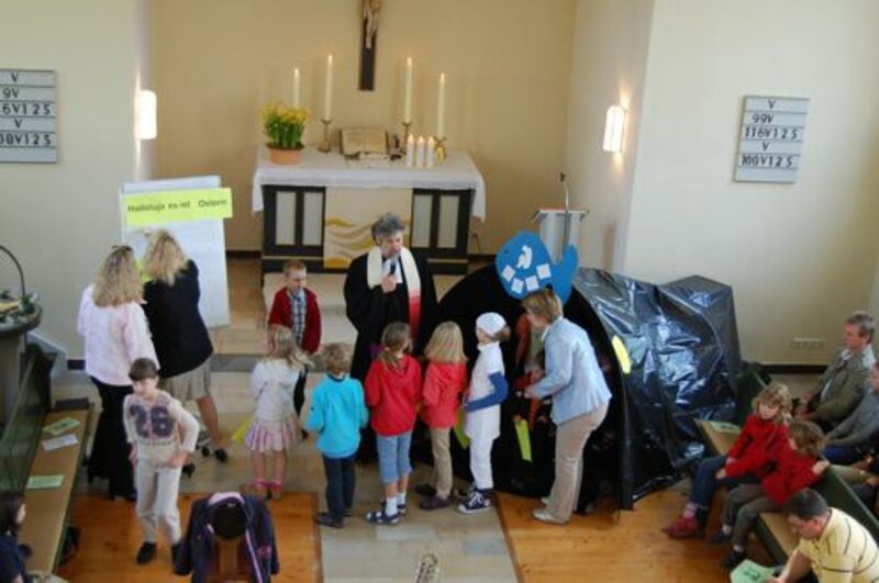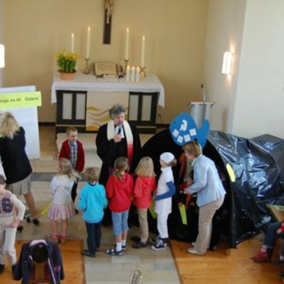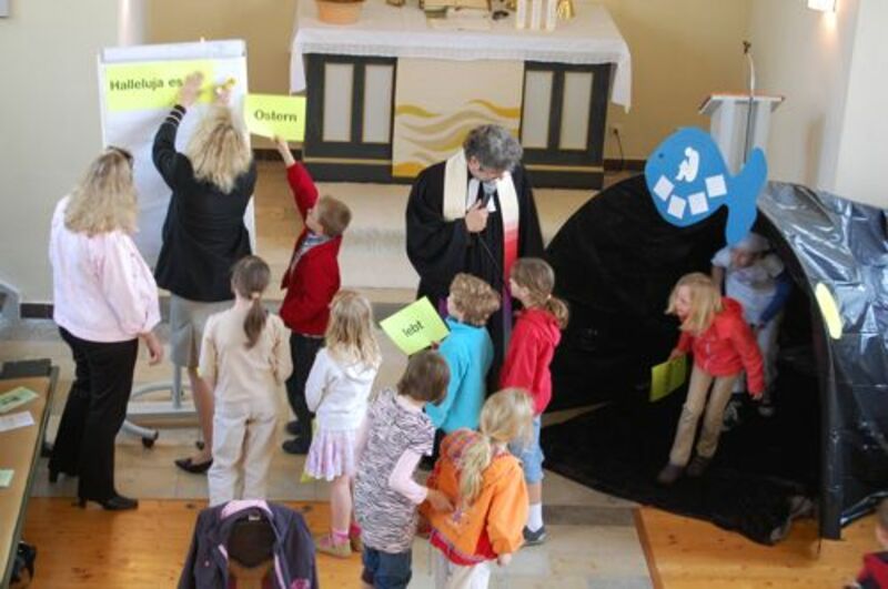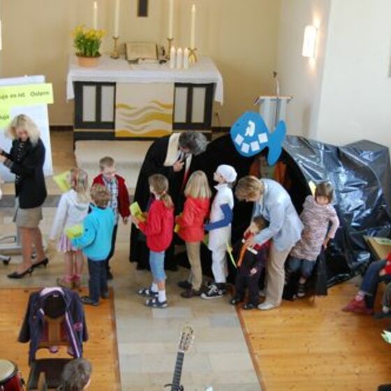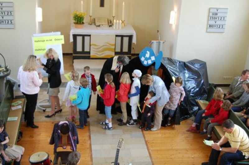 Biblische Geschichten von Gefahr und Rettung standen im Mittelpunkt des Ostergottesdienstes. Zunächst führte das Kinderorchester von Bruno Euen eine musikalische Lesung der Geschichte von der Rettung des Volkes Israel vor den Ägyptern am Schilfmeer auf. Unterstützt wurden sie dabei von Mitgliedern des Ökumenischen Chores.