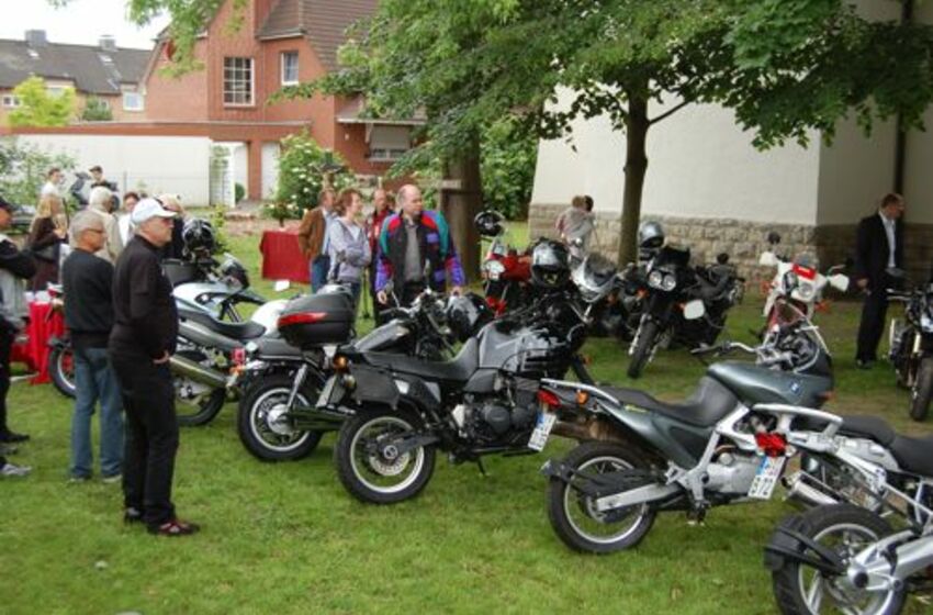 Das Wetter passte ausgezeichnet - kein Schnee und nicht zu viel Sonne, so dass auch viele gekommen sind. Nach einem ausgeklügelten System werden die schönsten Maschinen als Spalier zum Kirchgarten ...