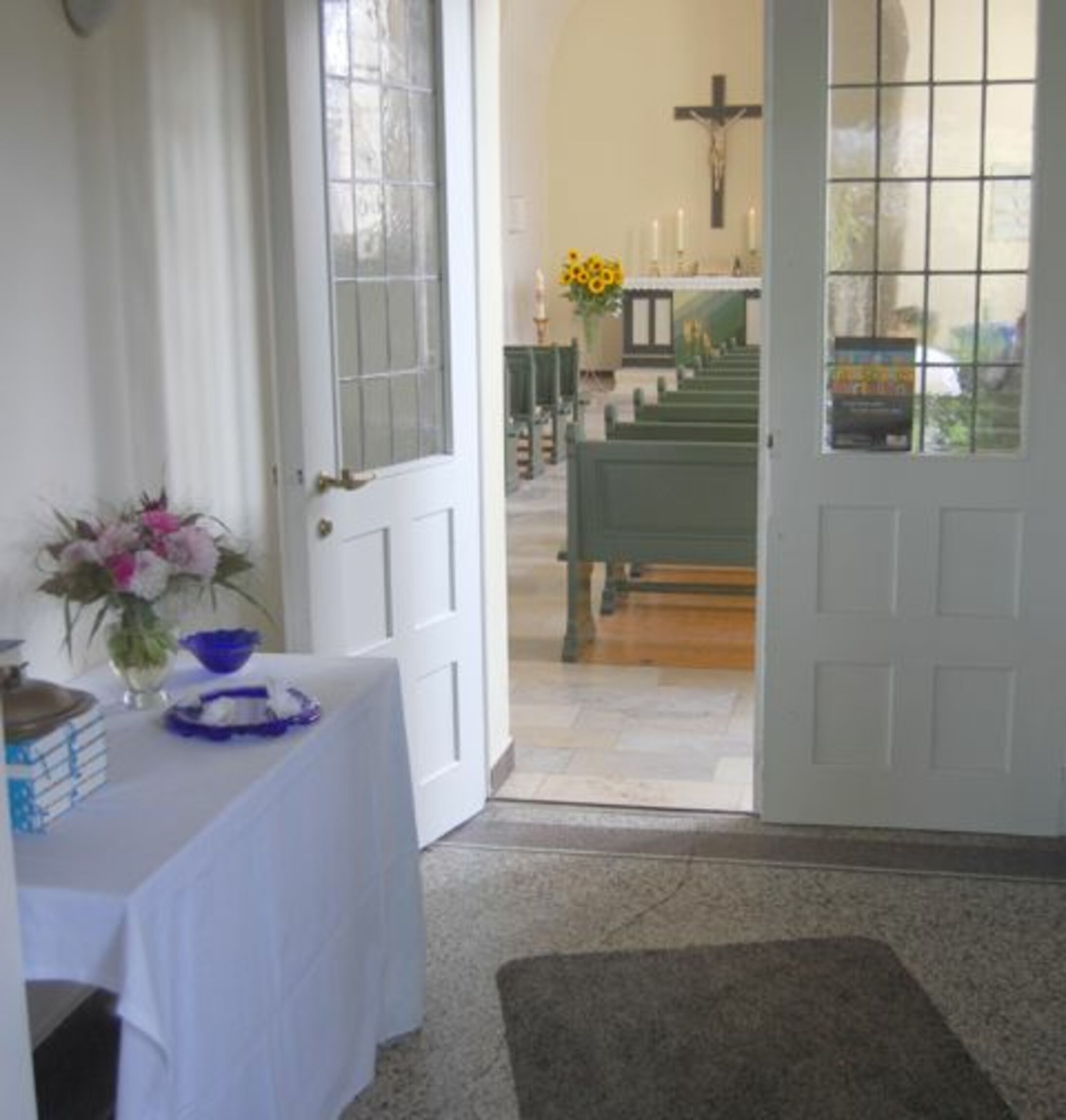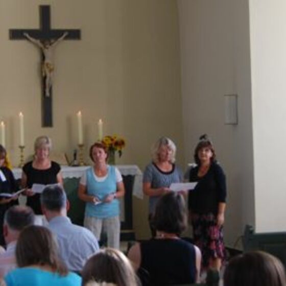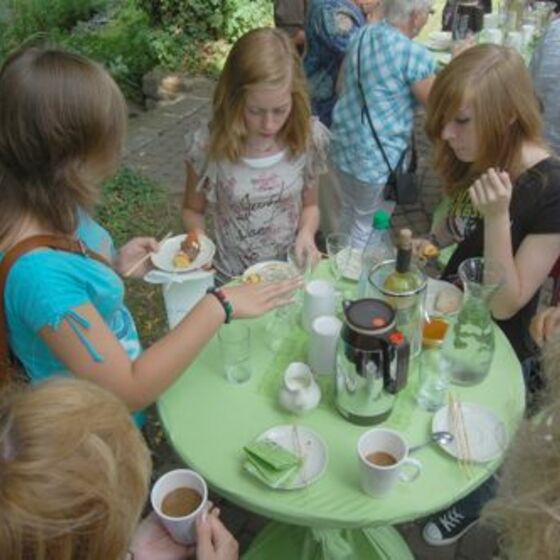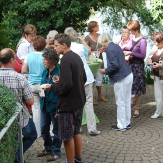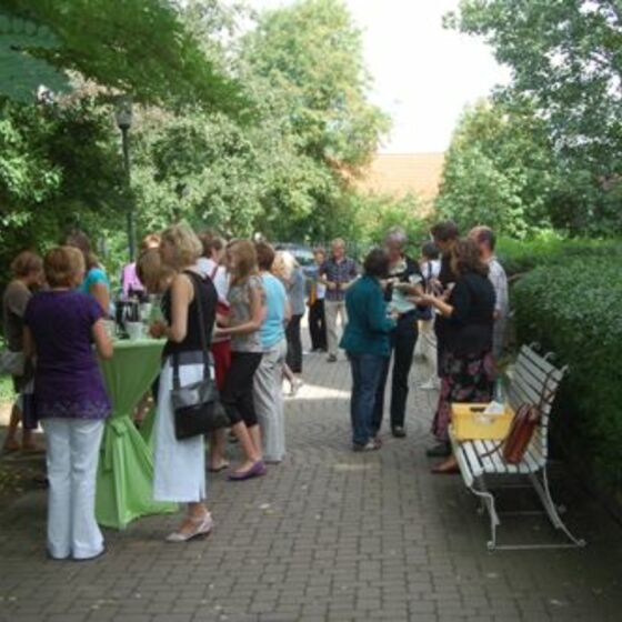 Schon am Eingang bemerkt man(n) die Veränderung - der Tisch mit den Gesangbüchern ist schön gestaltet. Ein Zimmerbrunnen stimmt auf das Thema des Gottesdienstes ein: "Lebendiges Wasser". Almut Bartels und Alexandra Ziemer halten eine Predigt im Dialog. Zu Beginn öffent Pastorin Ziemer eine Wasserflasche - ein Geräusch, das in diesem Sommer besonders gern gehört wurde (allerdings hätte die erste Reihe einen Regenschirm gut gebrauchen können). Nach dem Gottesdienst gibt es weiteren Gedankenaustausch im Kirchgarten. Sate-Spieße mit Erdnusssoße und Fruchtspieße mit Schokolade dämpften den ersten Hunger.