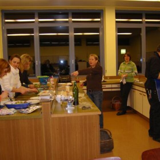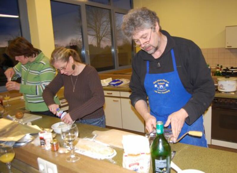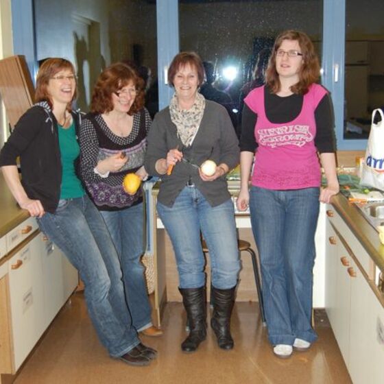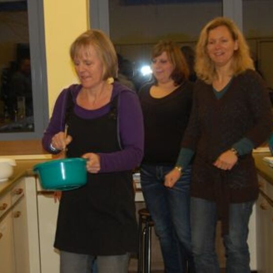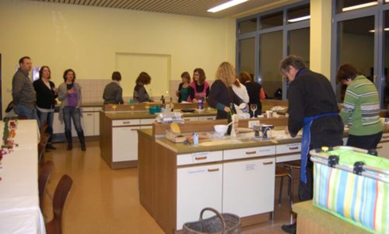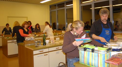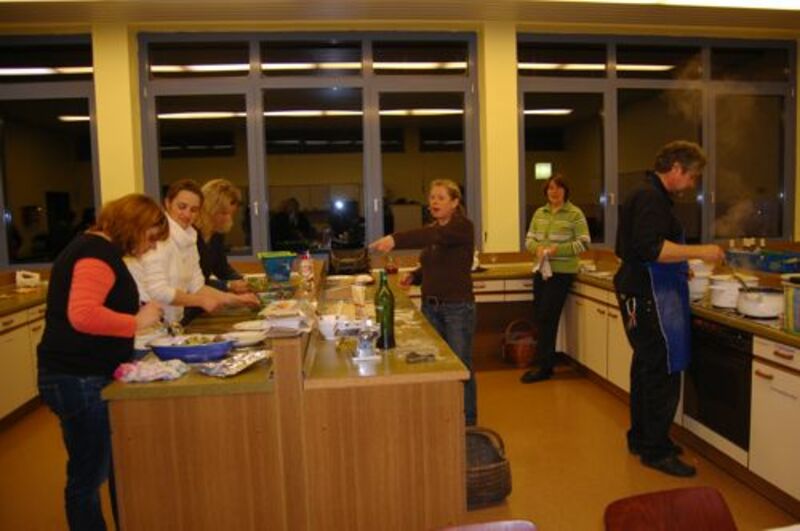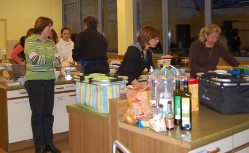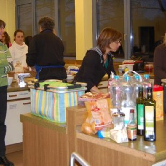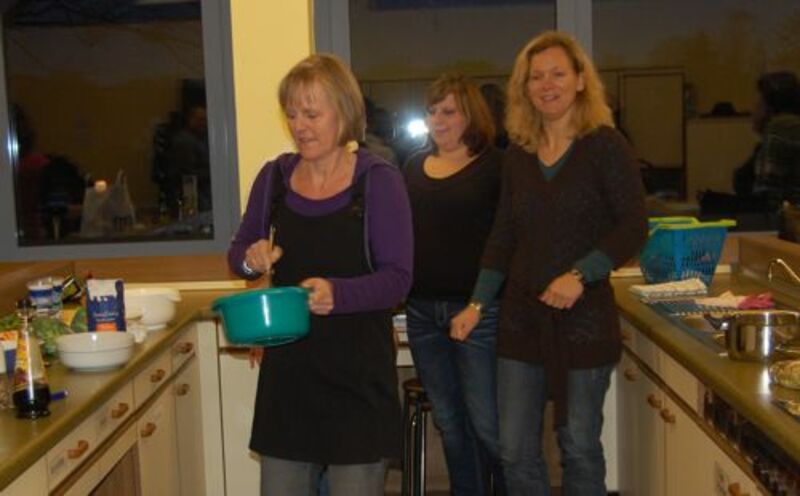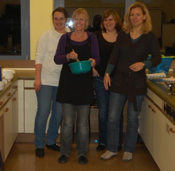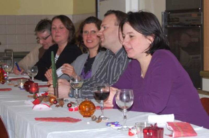 In diesem Jahr hatte sich der Elternbeirat gedacht: verbinden wir doch mal das Angenehme mit dem Nützlichen. So wurde der Danke-Abend für das Kiga-Team als Kochduell ausgestaltet. Das Kiga - Team wurde in dre Kochgruppen aufgeteilt, die gegeneinander antraten. Der Elternbeirat bildete die kritische Jury. Drei Menus zu verkosten war ja auch schon eine harte Aufgabe. Am Ende waren alle zufrieden, weil jedes Team einmal Sieger geworden ist