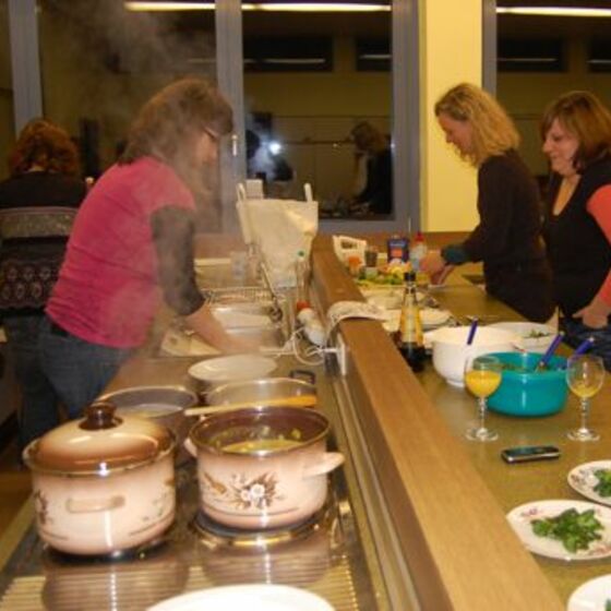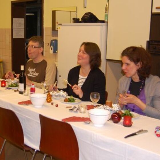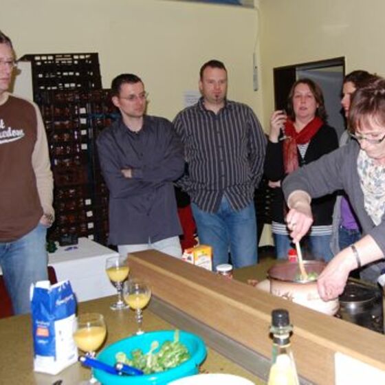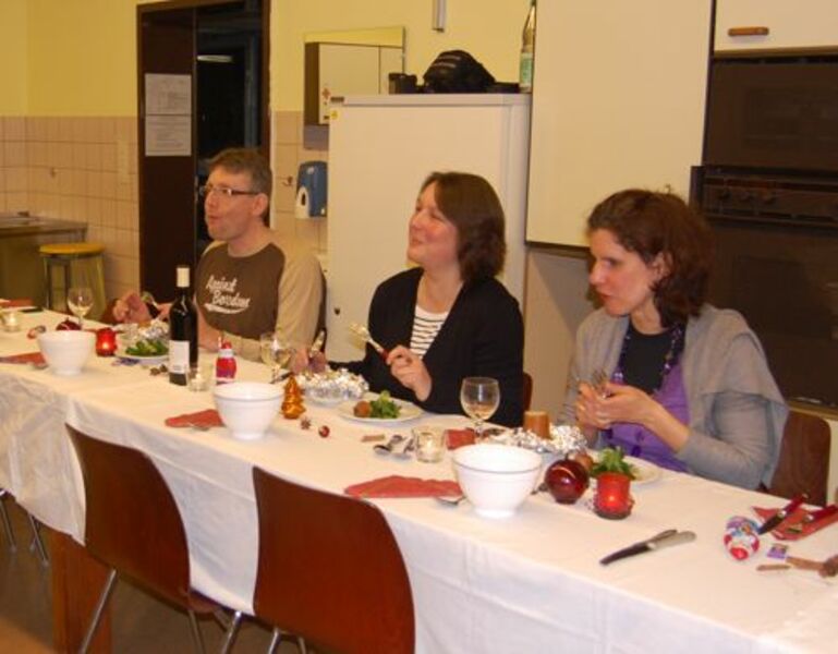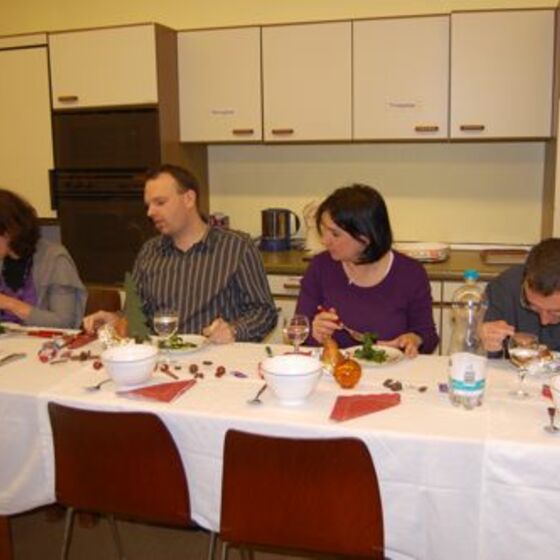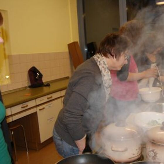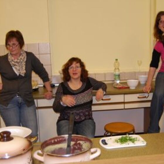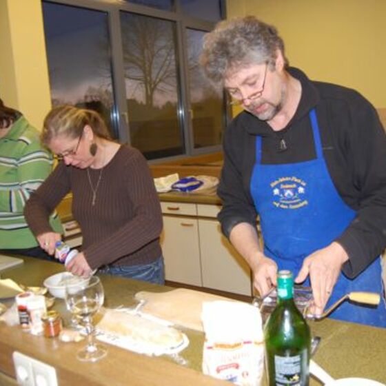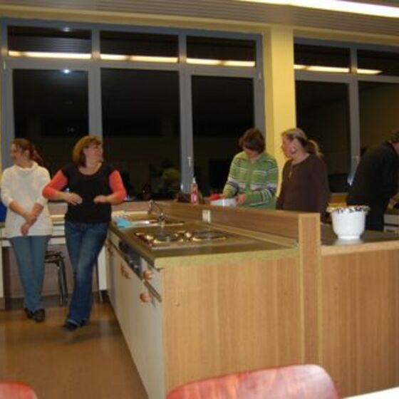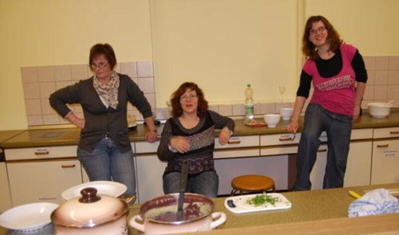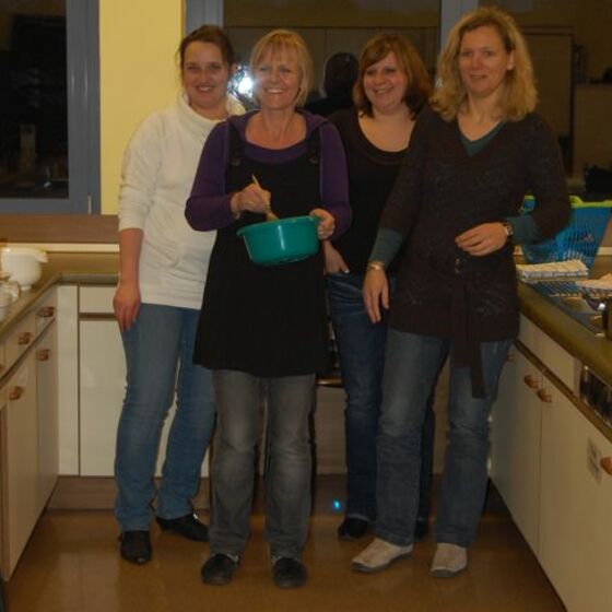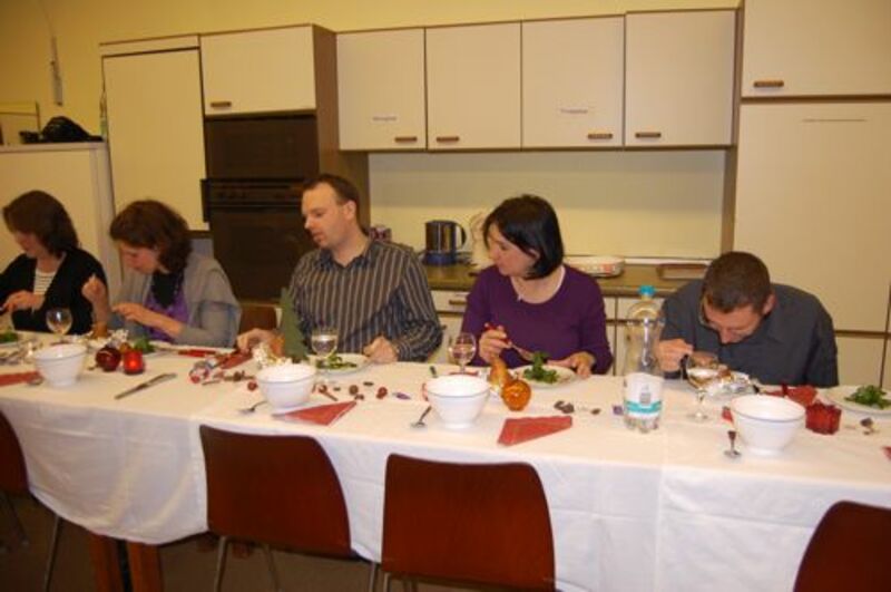 In diesem Jahr hatte sich der Elternbeirat gedacht: verbinden wir doch mal das Angenehme mit dem Nützlichen. So wurde der Danke-Abend für das Kiga-Team als Kochduell ausgestaltet. Das Kiga - Team wurde in dre Kochgruppen aufgeteilt, die gegeneinander antraten. Der Elternbeirat bildete die kritische Jury. Drei Menus zu verkosten war ja auch schon eine harte Aufgabe. Am Ende waren alle zufrieden, weil jedes Team einmal Sieger geworden ist