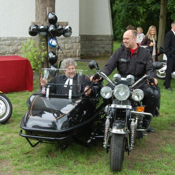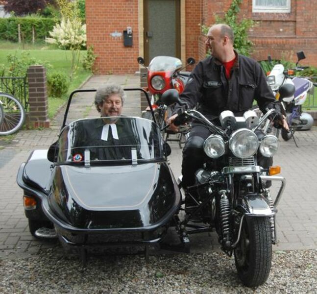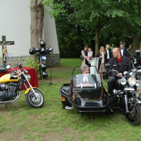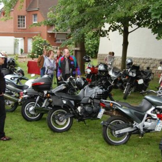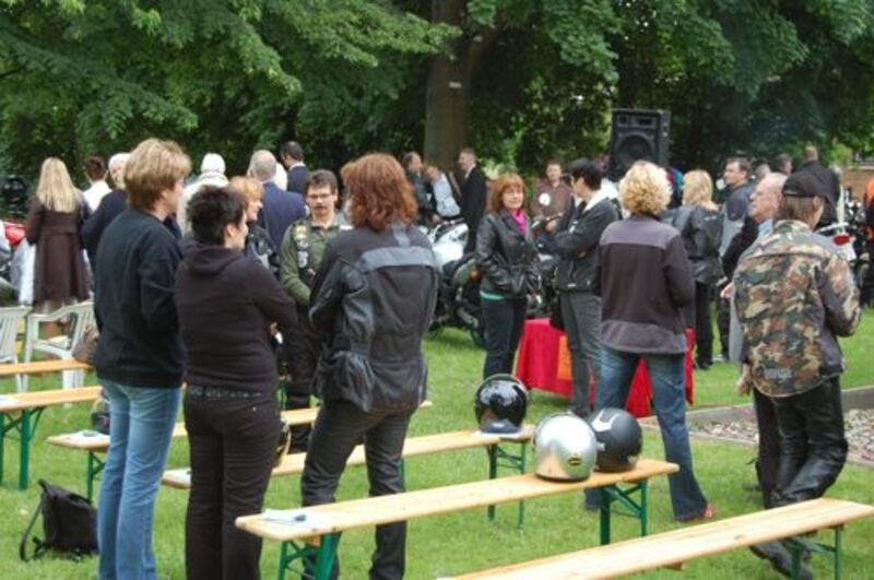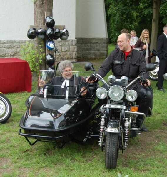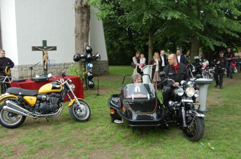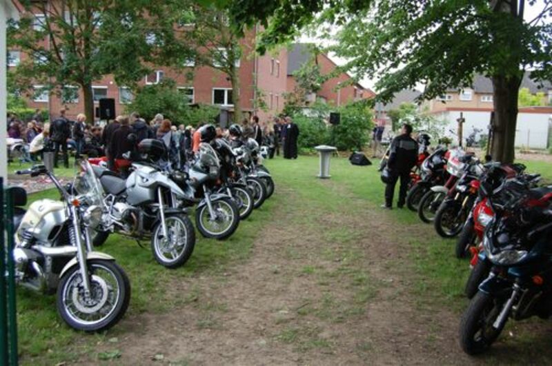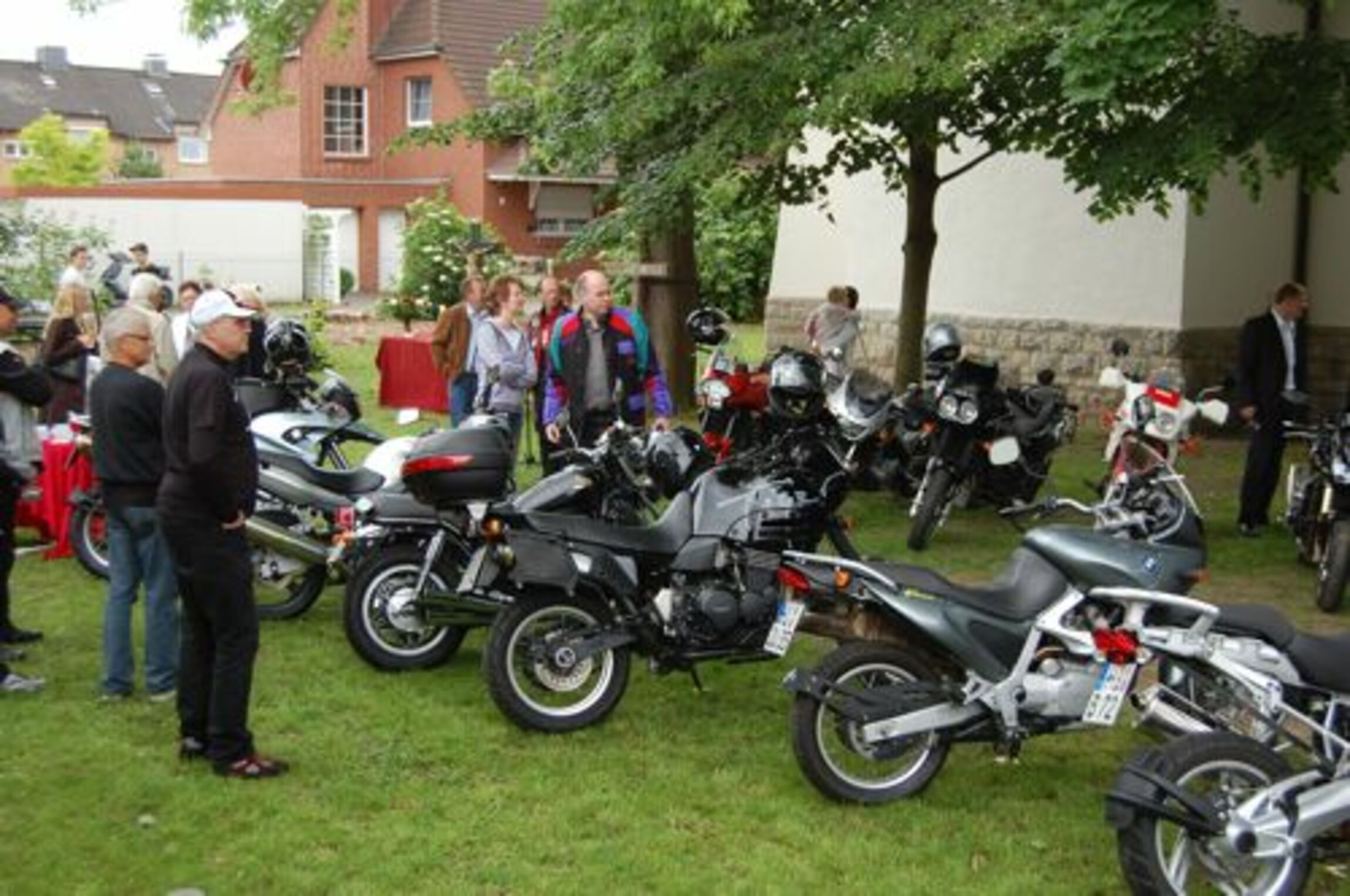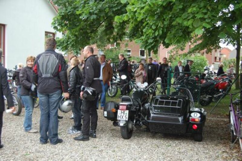 Das Wetter passte ausgezeichnet - kein Schnee und nicht zu viel Sonne, so dass auch viele gekommen sind. Nach einem ausgeklügelten System werden die schönsten Maschinen als Spalier zum Kirchgarten aufgestellt.