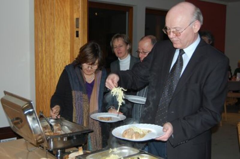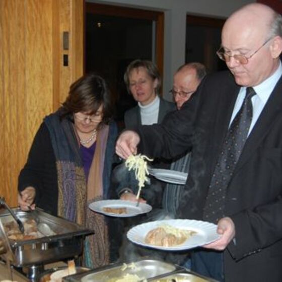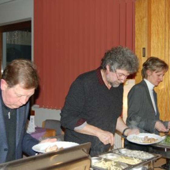 Zum zweiten Mal lud die St. Andreas Stiftung ein zum Stiftungsmahl am 13. Januar, dem Gründungsdatum der Stiftung. Viele Unterstützende kamen in das Gemeindehaus, um das 4-Gänge Menu zu kosten, das Pastor Bartels wieder gekocht hatte. Geistige Anregung gab es durcg kleine kabarettistische Einlagen, die Stiftungsvorsitzender Norbert Peche zusammen mit Pastor Bartels vortrug.