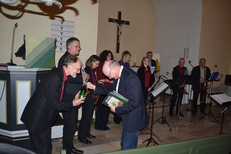 Von Indiana Jones über Piraten der Karibik bis zur Biene Maja reichte das Repertoire des Bläserkreises St. Michaelis bei dem diesjährigen Benefizkonzert für die St. Andreas Stiftung in unserer Kirche. Filmmusiken standen auf dem Programm, das viele Zuhörer anlockte. Dazu wurden jeweils die entspreechenden Filmsequenzen per Beamer gezeigt - es war also eine Multimedia-Show. Dazu wurden in den Pausen von Stiftungsvorsitzendem Norbert Peche und Pastor Ralph-Ruprecht Bartels Gedichte von Ringelnatz, Heinz Erhard und Robert Gernhardt vorgelesen. Unter dem Dirigat von Helmut Langenbruch nahmen uns die Musikerinnen und Musiker mit auf eine Zeitreise, die bei einigen bis in die frühste Kindheit reichte - wer erinnert sich nicht an die "Sandmännchenmelodie". Dass damit der Geschmack des Publikums voll getroffen wurde, zeigte der lang anhaltende Applaus am Schluss.