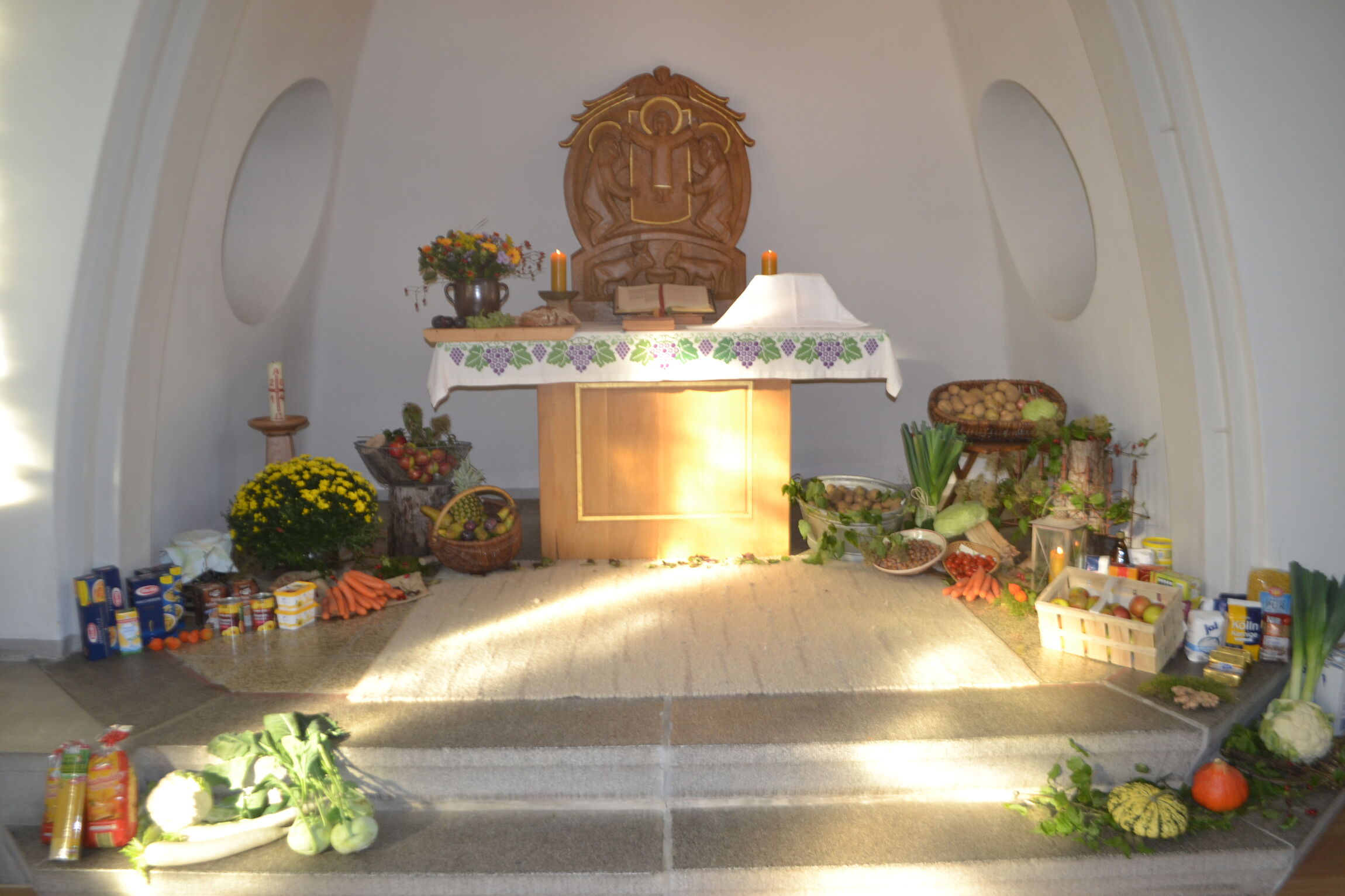 Wieder mal war der Altar der St. Martinskapelle in Bavenstedt reich geschmückt zum Erntedankgottesdienst. Unsere Küsterin Frau Försterling hatte auch in diesem Jahr wieder ganz neue Gestaltungsideen entwickelt und die gespendeten Erntedankgaben kunstvoll arrangiert.Vor allem die neuen Konfirmanden und die sie begleitenden Eltern sorgten dafür, dass wir in einer gut gefüllten Kirche Gottesdienst feiern konnten. Die Erntegaben werden wieder zum Guten Hirten gebracht. Allen SpenderInnen sei herzlich gedankt!