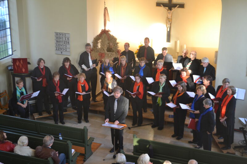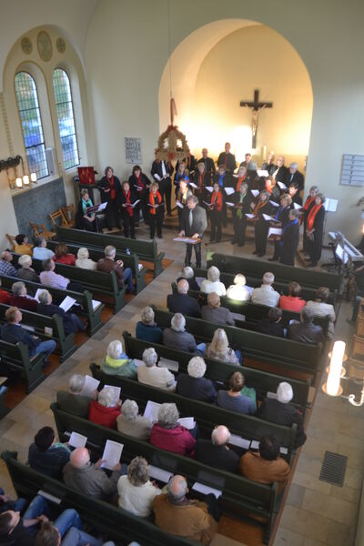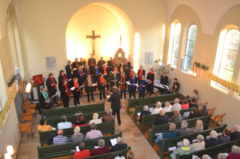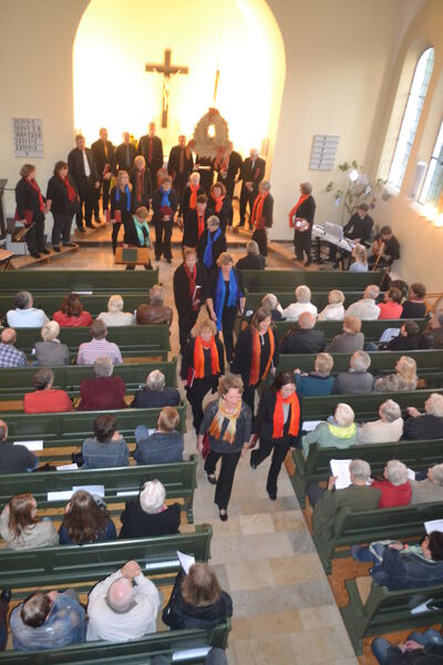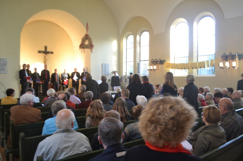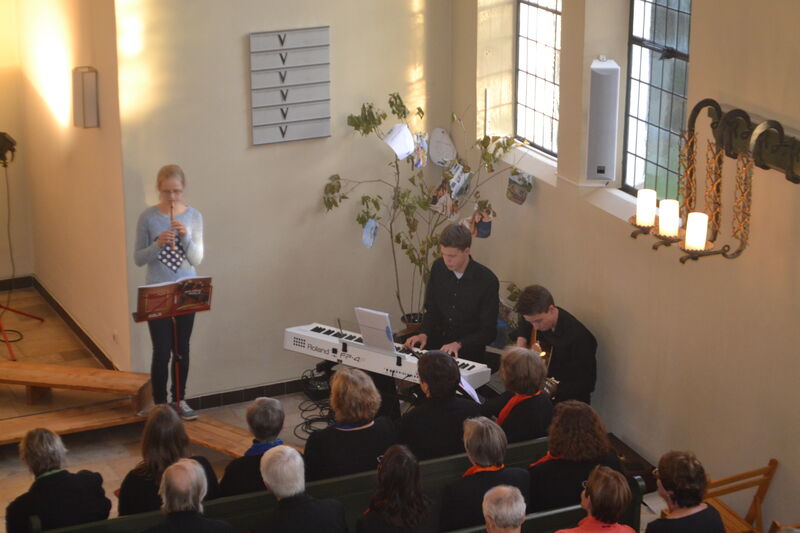 Es war einfach nur bezaubernd! Nach drei Jahren gab es wieder ein Konzert des Kehrwiederchores in unserer St. Andreas Kirche. Unter der Leitung von Hans-Dieter Lubrich und Werner Bodenburg trug der Chor Lob- und Danklieder aus aller Welt vor. Zwischendurch gab es ein Blockflötenduett von Paula Gehrs und Barbara Lubrich. Paula Gehrs spielte dann auch noch ein Stück zusammen mit Jan und Lars Wichmann (Klavier / Gitarre/Percussion). Das gab tosenden Beifall - zumal die Musiker noch Jugendliche sind. Drei neuere Kirchenlieder durften auch die Zuhörenden mitsingen und alle freuten sich über die Klangfülle, die sich dabei in unserer Kirche ausbreitete. Wohl alle wünschen sich, dass es nicht wieder drei Jahre dauert, bis der Chor wieder kehrt.