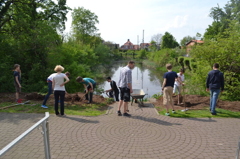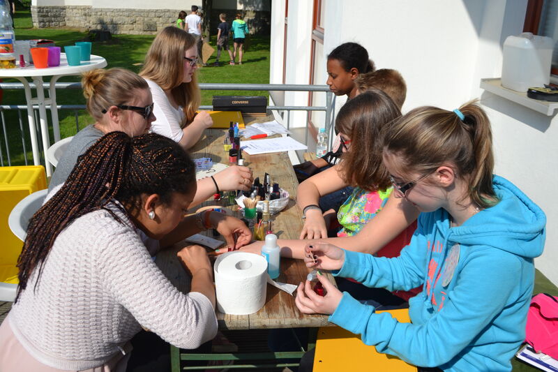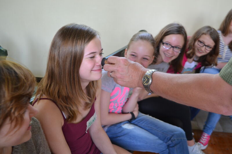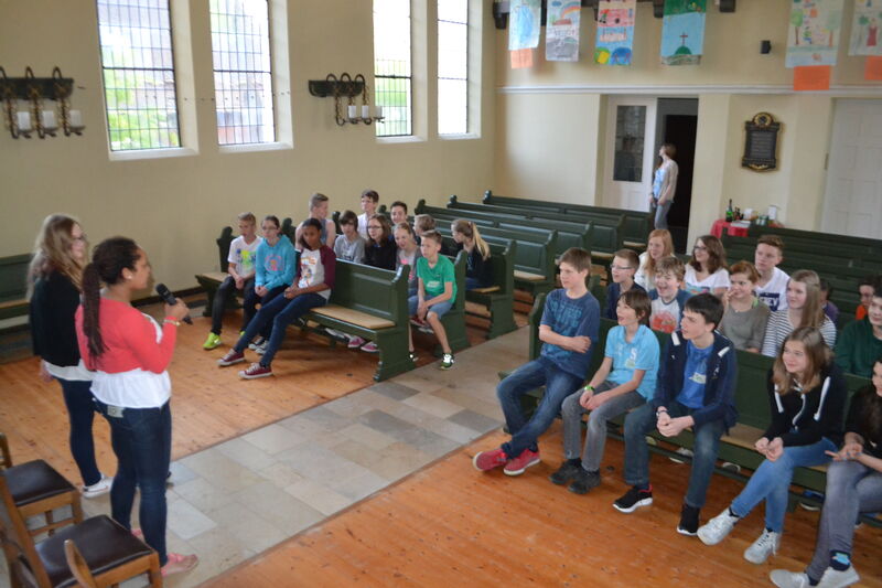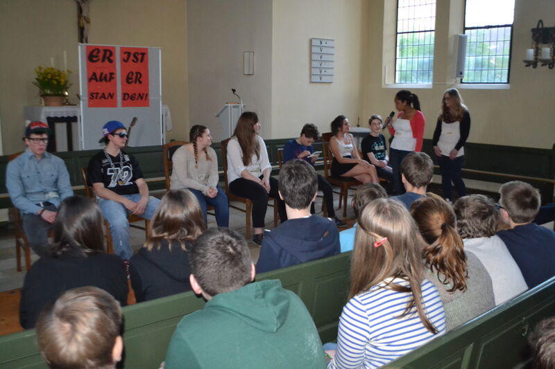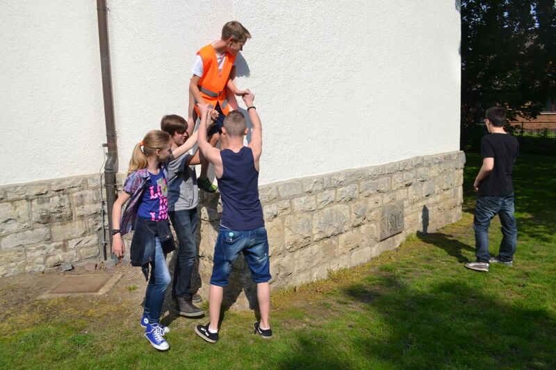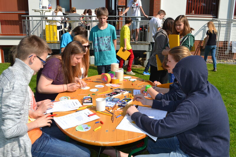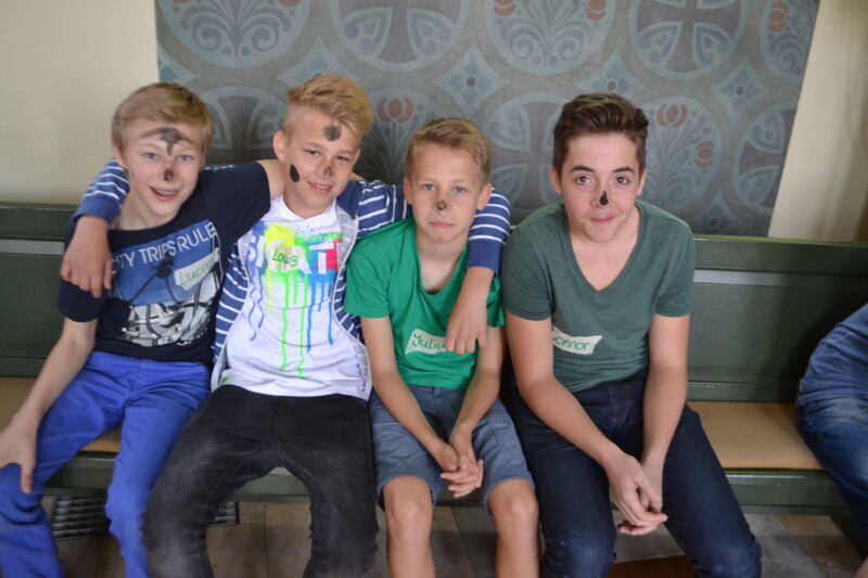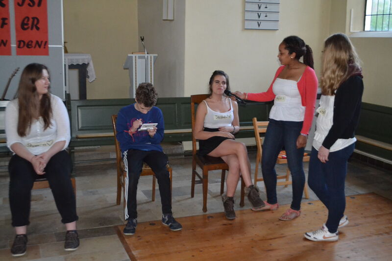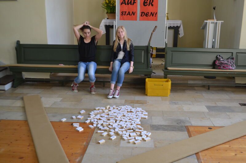 Beim letzten Konfi-Wochenende ging es für die Vorkonfirmanden um den christlichen Glauben. Nach dem Ankommen konnten sie sich beim Rippeltippelspiel mit schwarzen Punkten verschönern lassen. Abends hatten dann die Mitarbeitenden eine Glaubenstalkshow vorbereitet. Sie spielten Jugendliche in verschiedenen kulturellen Orientierungen und wurden auf ihr Haltung zum Glauben befragt. Am Samstagvormittag gab es acht Stationen, in denen die Konfis Erfahrungen machen konnten, die sich auf den Glauben beziehen. Am Nachmittag gestalteten sie ein großes Baumbild für den Gottesdienst. Jede Gruppe bekam ein Buchstaben aus dem Wort "Glaube" und musste dazu Begriffe finden, die zum Glauben gehören. In der Predigt gab es dann im Gottesdienst Erläuterungen dazu. Die Kräftigsten der Konfirmanden halfen dabei, die Pflanzlöcher für die beiden Bäume zu graben, die am Sonntag gepflanzt werden sollten.