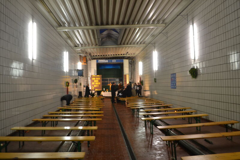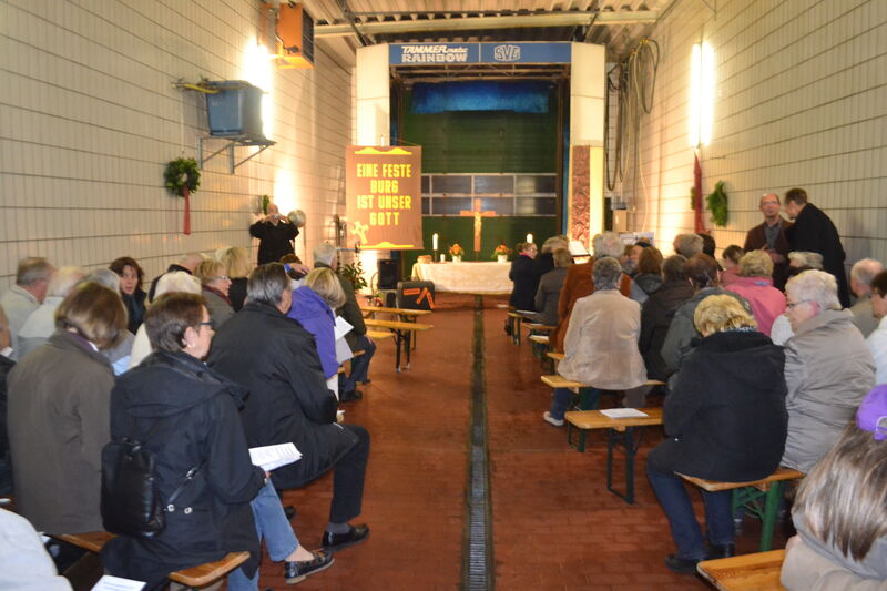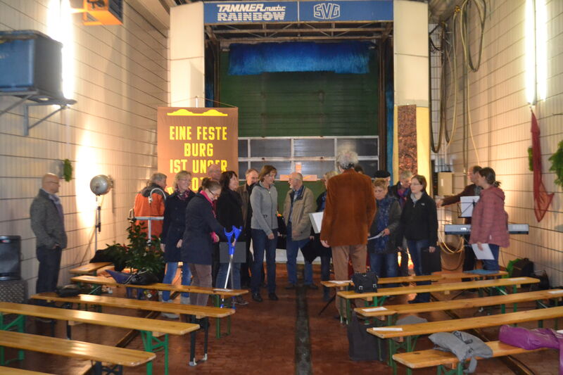 In diesem Jahr fand der regionale Reformationsgottesdienst in einer Waschanlage statt. Und zwar im Busdepot der Firma Sausewind in Borsum. Wo sonst die Reisebusse gereinigt werden hatte der Kirchenvorstand von Borsum und Rautenberg mit schönen Ideen einen gottesdienstlichen Raum hergerichtet. Das Thema des Gottesdienstes - "Unterwegs sein" - knüpfte an die Geschichte von Martin Luthers "Bekehrung" an: er war unterwegs, als ein Blitz neben ihm einschlug und ihn dazu brachte, Mönch zu werden. So fing das Ganze mit der Reformation mit einer Reise an. Die Pastoren Achilles, Bartels und Winkelmann überlegten in ihren Kurzpredigten, was für verschiedene Arten von Bussen es gibt und wie sie für verschiedene Seiten des gemeindlichen Lebens stehen können. Die musikalische Gestaltung lag in den bewährten Händen von Werner Bodenburg (Keyboard) und Bruno Euen (Chorleitung). Für diesen Gottesdienst hatten sich der Ökumenische Chor und der Gospelchor "Joy get together" zusammengefunden. Vor dem Schlusssegen dankte Pastor Eckart Winkelmann dem Ehepaar Steenken dafür, dass sie diesen Gottesdienst in ihrer Bushalle ermöglicht hatten.
