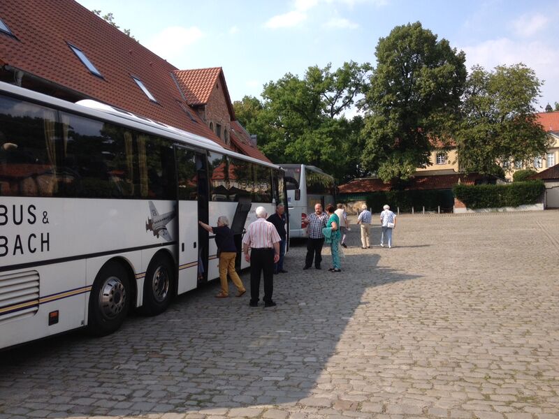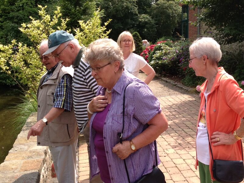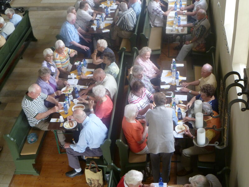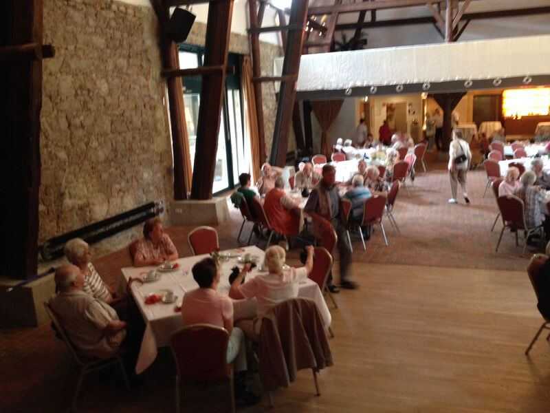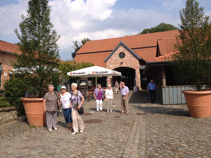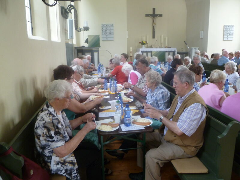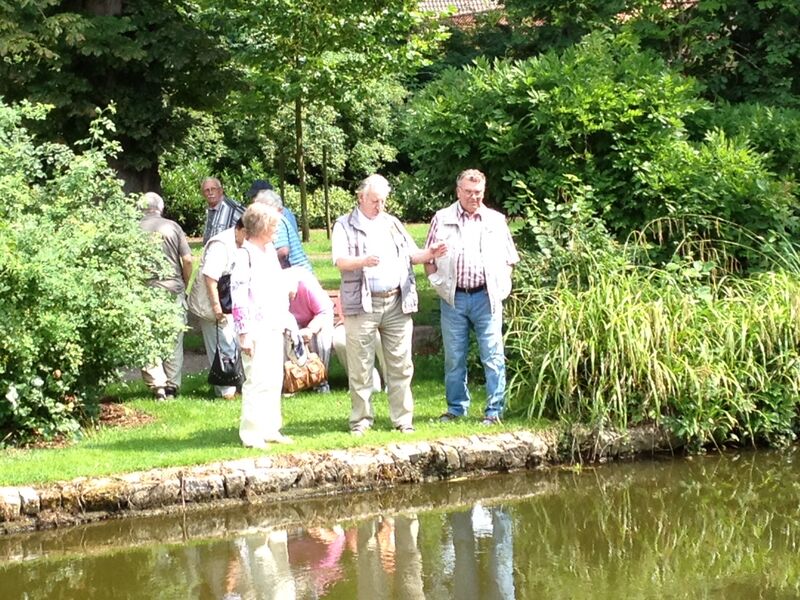 Bei sonnigem Wetter holten zwei Busse die Seniorinnen und Senioren aus Asel, Bavenstedt und Harsum zum Ausflug zu einem Gutshof-Café in Rethmar ab. Eine gewaltige ehemalige Scheune bot genug Platz zum gemütlichen Kaffeetrinken. Danach lockte der Englische Garten des Gutshofes mit seinen riesigen Bäumen und bunten Sträuchern zum Spazierengehen. Viele sezten sich auch an den kleinen Teich und sahen den Goldfischen zu, die sich immer wieder neu versammelten. "Guck mal, genau wie bei uns - der große Schwarm ist Harsum, der mittlere ist Asel und der kleine ist Bavenstedt," so wurde das gedeutet, was man im Wasser beobachten konnte. Der Ausflug endete wieder mit einem gemeinsamen Abendbrotessen in unserer St. Andreas Kirche. Hier hatten die Vertrauensfrauen Tische und Bänke zu einer großen Tafel aufgestellt. Statt der sonst üblichen warmen Suppe wurde Kartoffelsalat und Würstchen serviert - warm genug war es ja an diesem schönen Tag. Einen großen Applaus gab es für die Vertrauensfrauen, die diesen Ausflug wieder so schön vorbereitet hatten.
