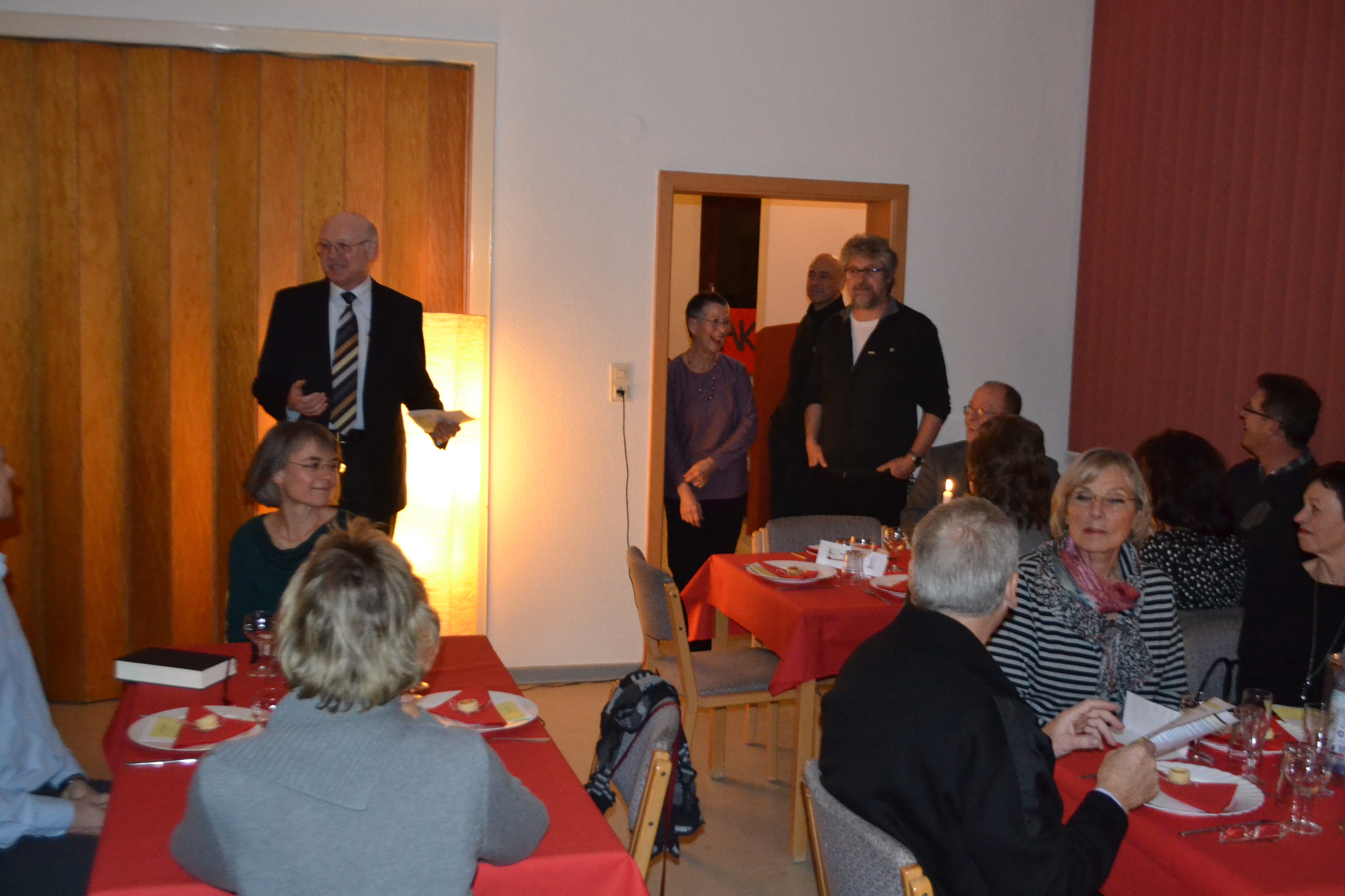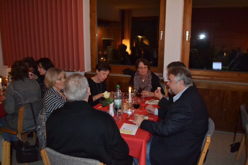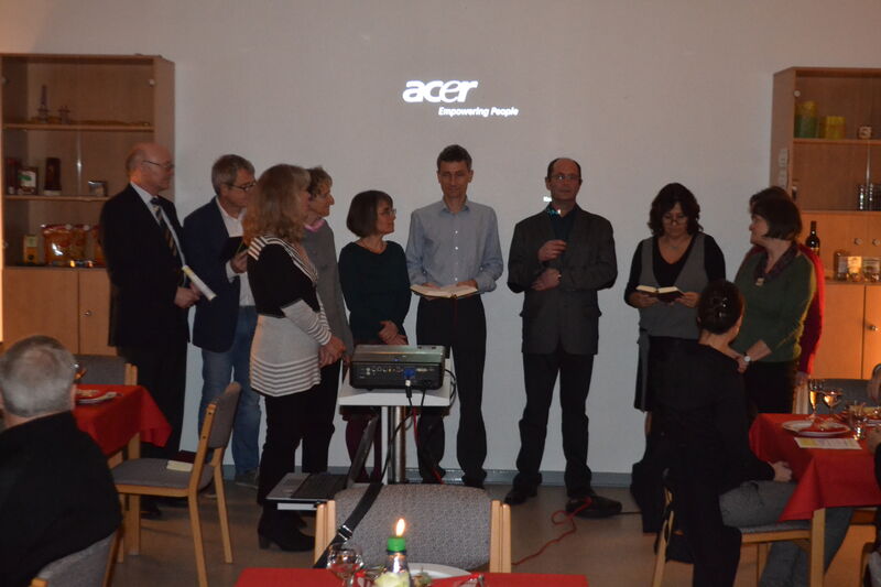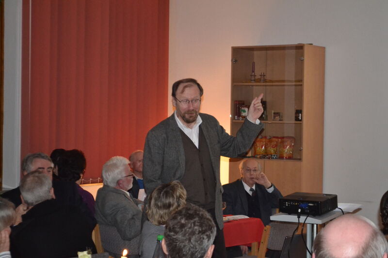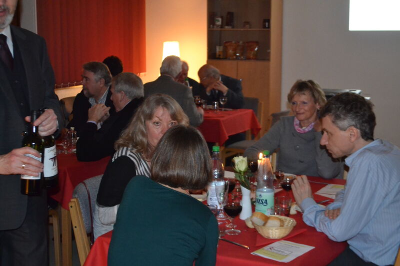 Zum 6. Mal konnte Vorsitzender Norbert Peche zahlreiche Gäste beim Stiftungsmahl am 10. Januar 2014 im Gemeindehaus begrüßen. Marianne Kappei und Ralph-R. Bartels hatten in der Küche das Menu zubereitet: eine mit Grünkohl gefüllte Kartoffel a la Rainer Sass, Roastbeef mit dreierlei Soßen, Käseauswahl und Panna cotta mit Portweinkirschen. Einen sehr anregenden inhaltlichen Beitrag gab es zwischen den einzelnen Gängen von Prof. Dr. Udo Schnelle von der Martin Luther Universität in Halle-Wittenberg. Er referierte darüber, warum das Christentum im ersten Jahrhundert eine so erfolgreiche Religion war. Am Schluß ergab sich noch eine angeregte Diskussion darüber, was das für die gegenwärtige Situation der Kirche bedeuten kann. Diese Diskussion soll demnächst bei einem Gesprächsabend fortgesetzt werden.